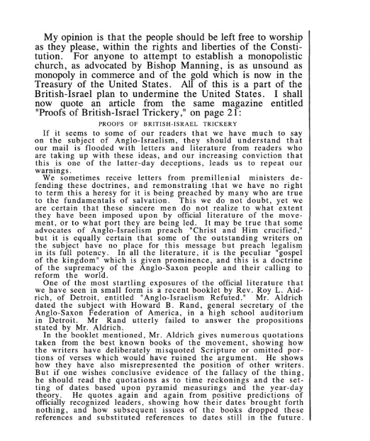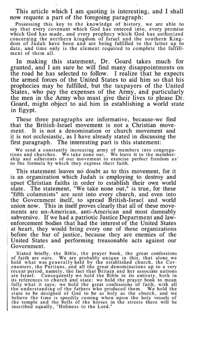 In this section it is made clear that the British-Israel movement has infiltrated our churches, schools, and even the Army itself.