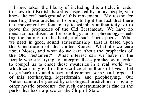 It is indeed unfortunate that many Christian churches have allowed the British-Israel movement in the church organizations.