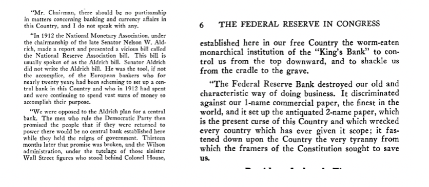 It was also the same year in which we, by adopting the Federal Reserve Act, placed our Treasury under the control and domination of the Bank of England and the international banking groups that are now financing the British-Israel movement in the United States.
