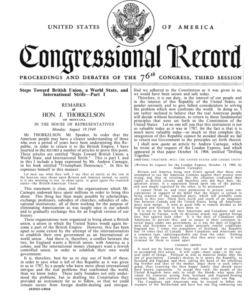 I have selected the most important sections of the Congressional Record from August 19, 1940 as well as the links to the entire Congressional Record with the Remarks of Hon. J. Thorkelson of Montana in the House of Representatives as well as many more links so that you can dig deeper and do your own research.