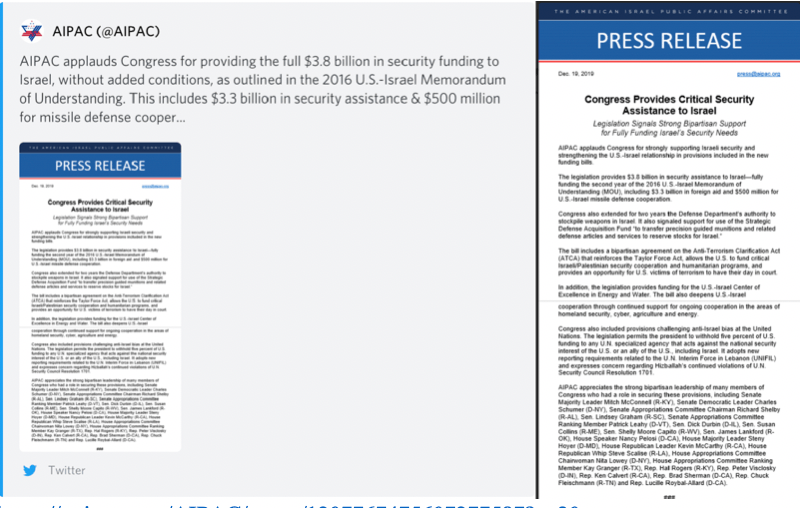 The thread continues . . . https://twitter.com/AIPAC/status/1207767477863759872?s=20