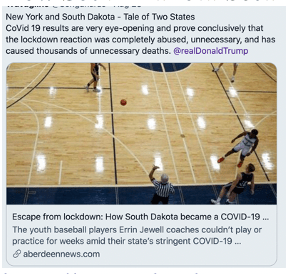 South Dakota did not lock down at all, allowed Hydroxychloroquine, Zinc, Z-Pak for treatment of CoVid 19, and did not mandate mask wearing.