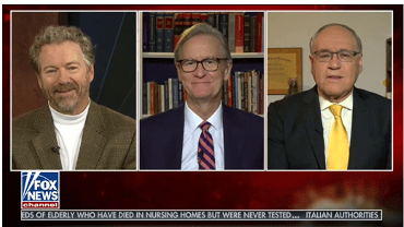 Senator Rand Paul appears on Fox News to discuss what it was like for him to contract the Wuhan Virus. Interestingly, as a doctor himself, Senator Paul shares that he had no symptoms for the virus despite testing positive. Additionally, Senator Paul shares that his local healthcare providers are prescribing hydroxychloroquine as a treatment and there appears to be anecdotal evidence the medication has positive effects.